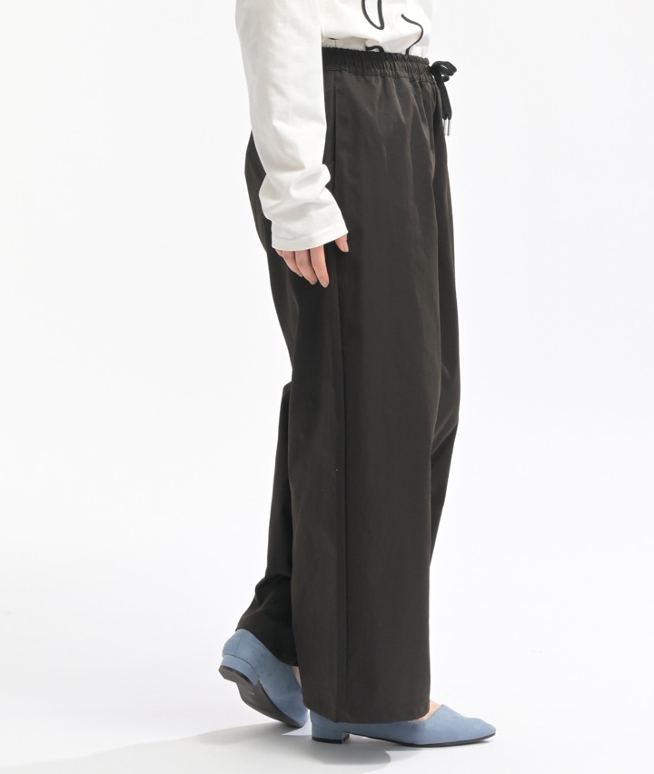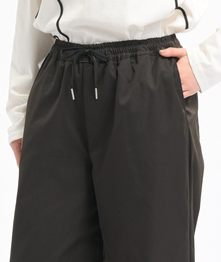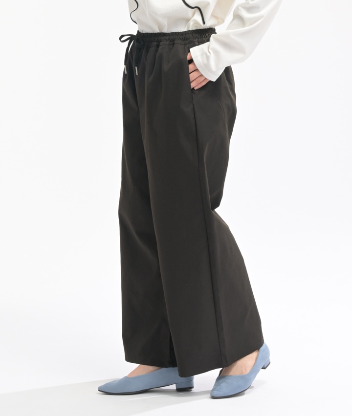 ・きれいメなツイルのストレートパンツです。ウエストドロストで履きやすいパンツです。