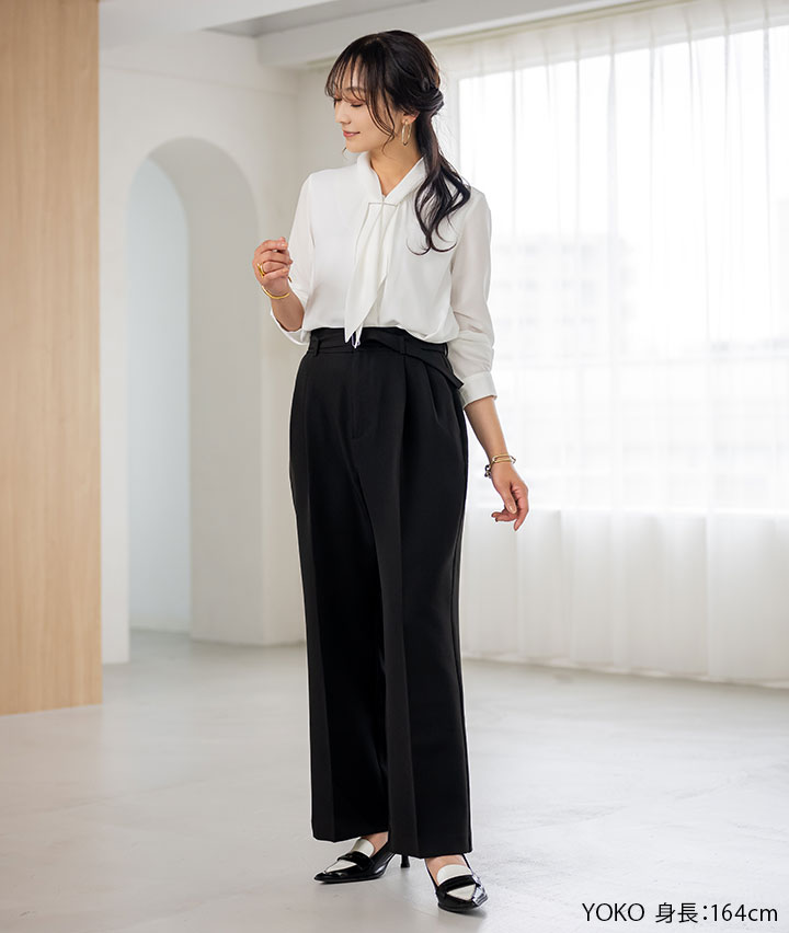 ・共布のベルトが付いたワイドパンツはキレイ目ベーシックな1着で着回し易いアイテムです。