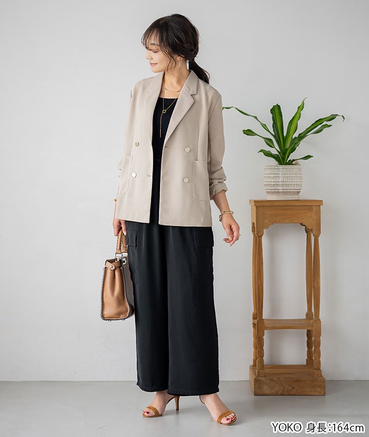 ・サイドポケット付きでカジュアル感のあるデザインですが素材がキレイ目なので大人っぽく着こなせるパンツです。