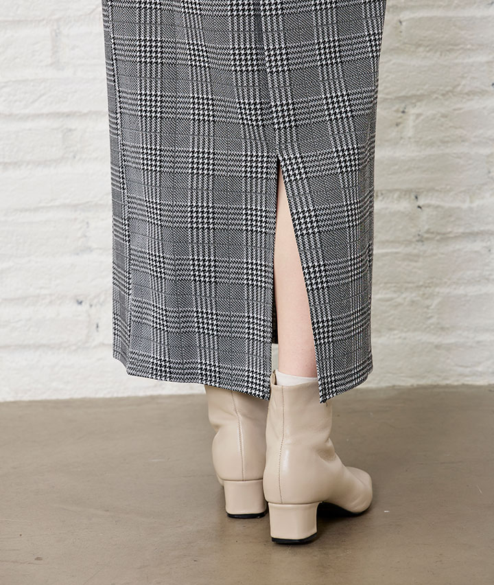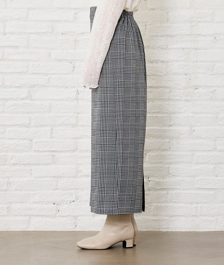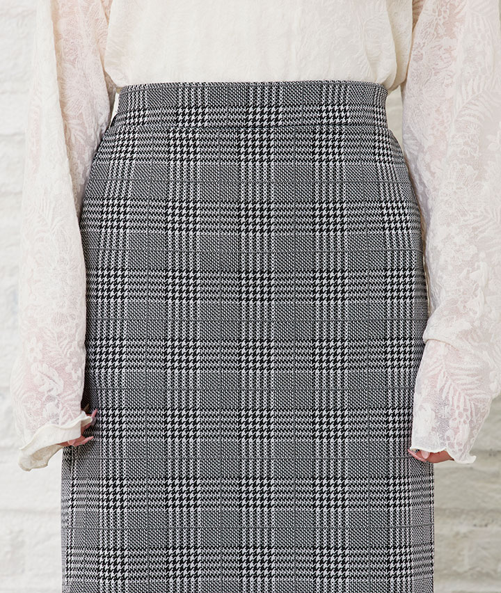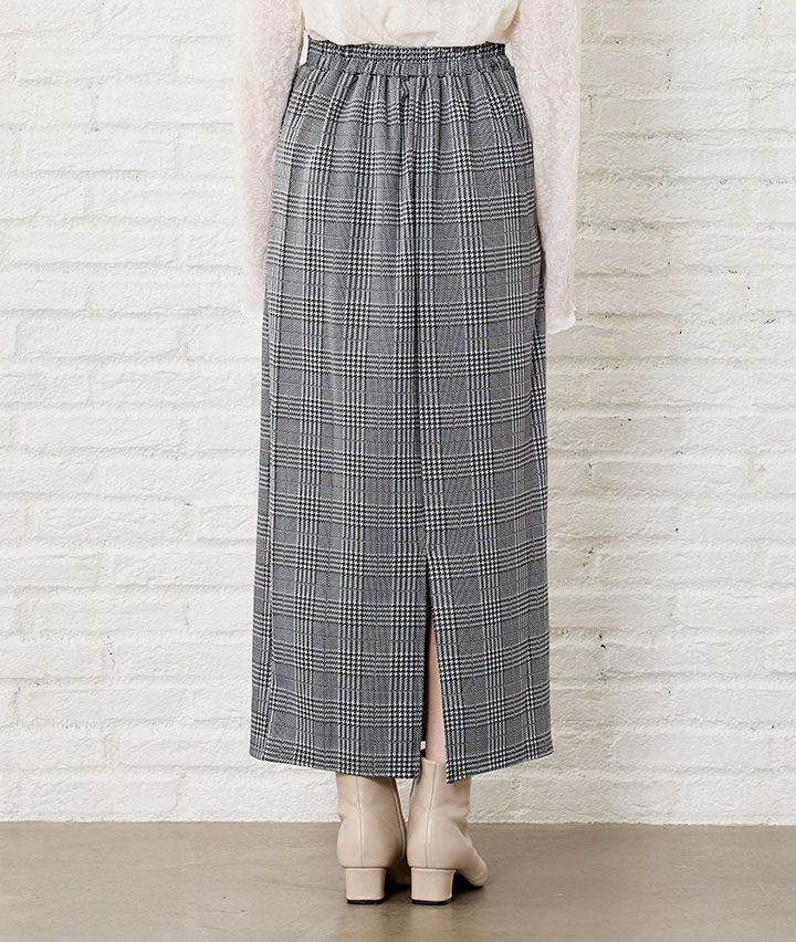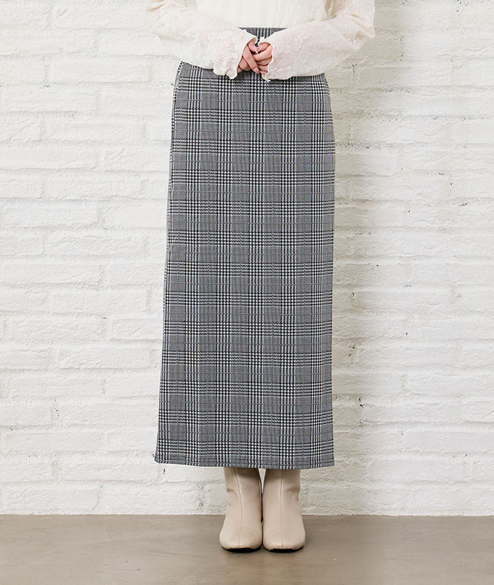 ・流行のチェック柄のスカート。カット素材なのでストレッチ性があり履きやすいスカートです。