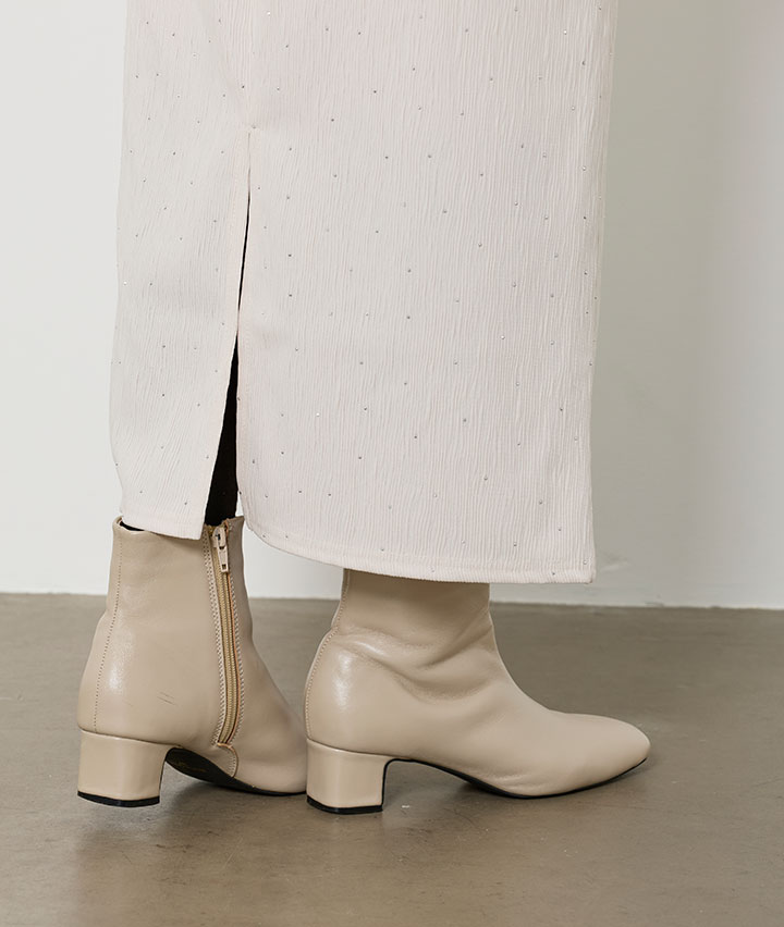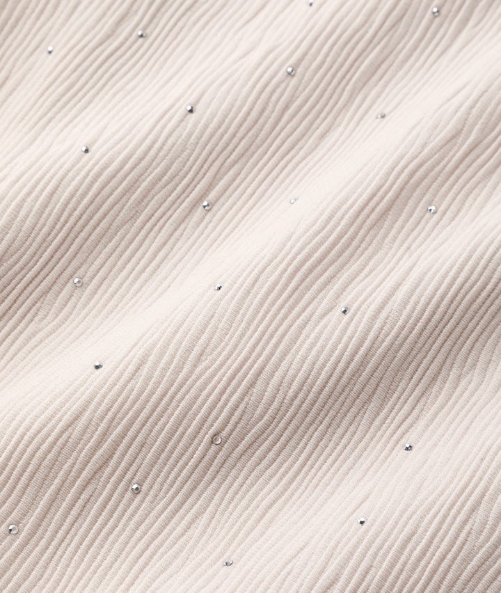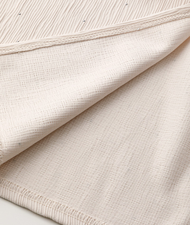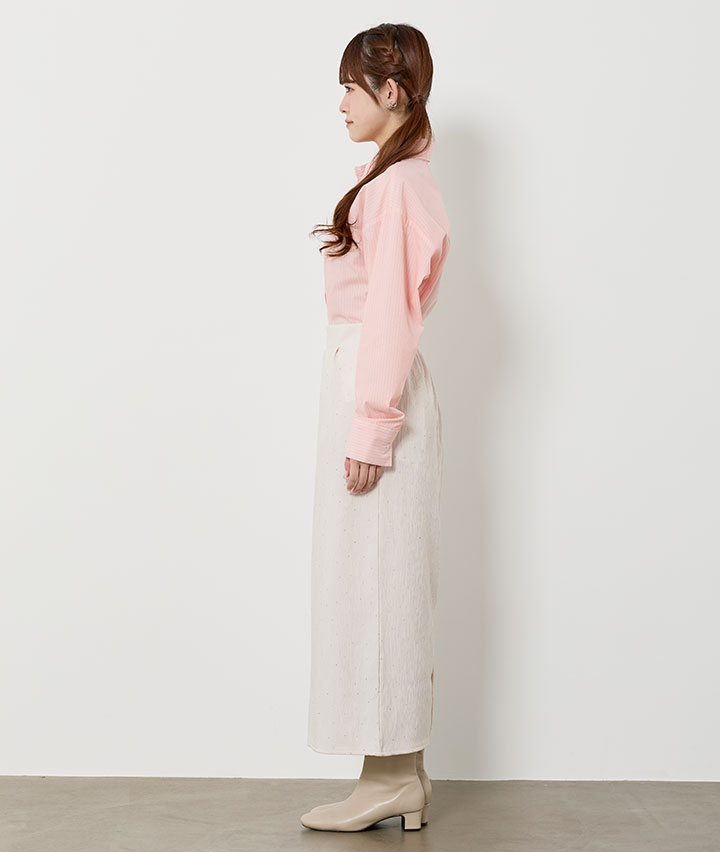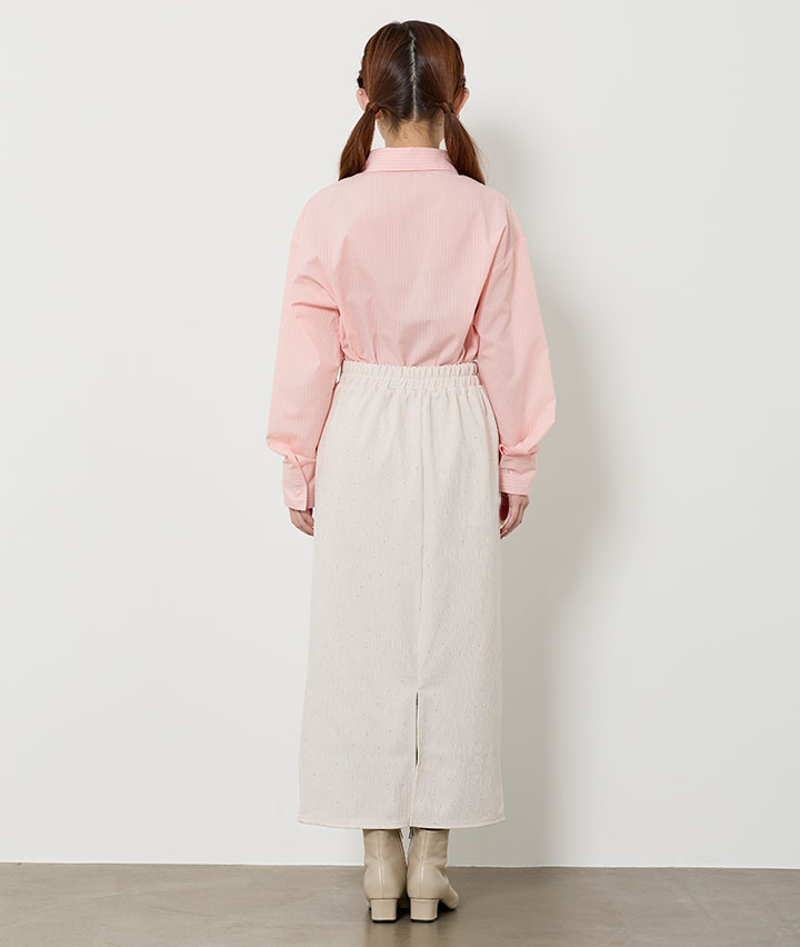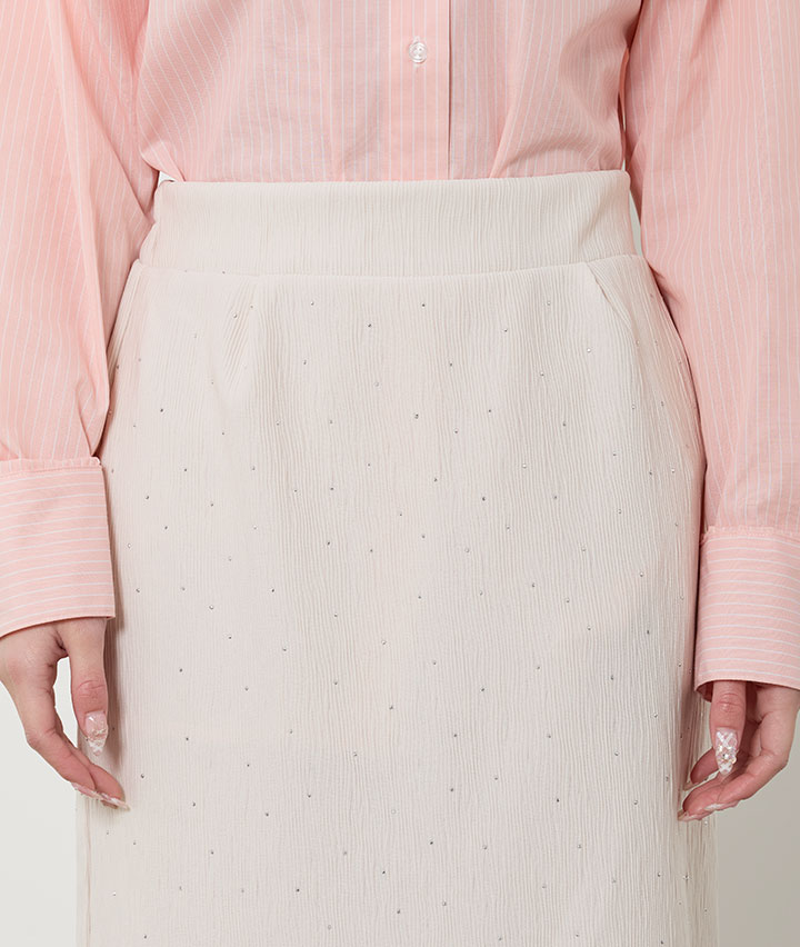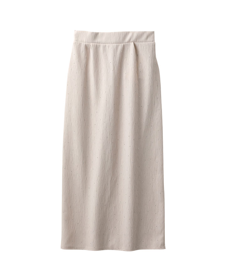 ・キラキラとしたビジュー使いのナロースカート。ウエストゴムも嬉しいポイントです。