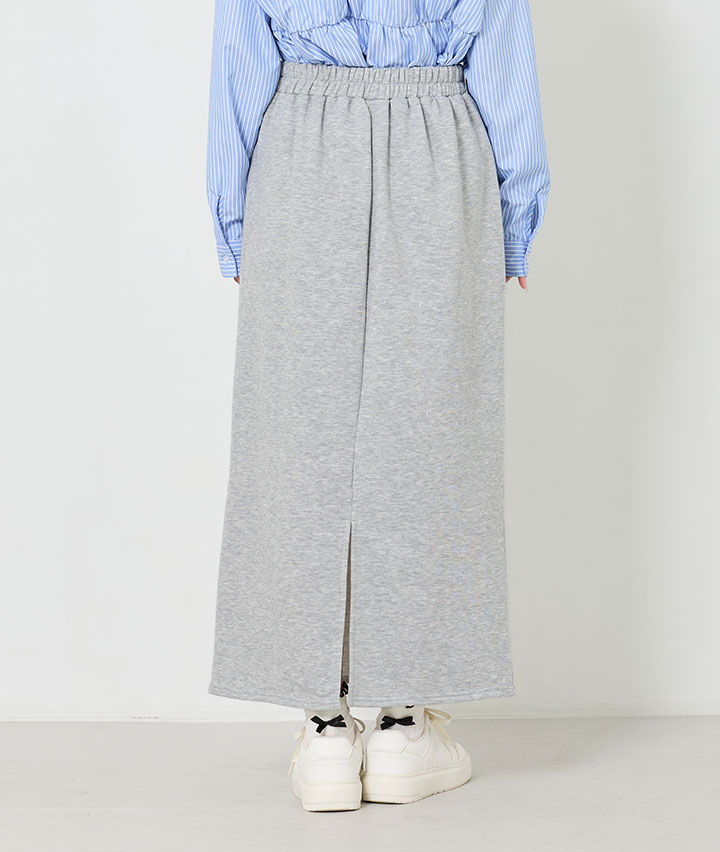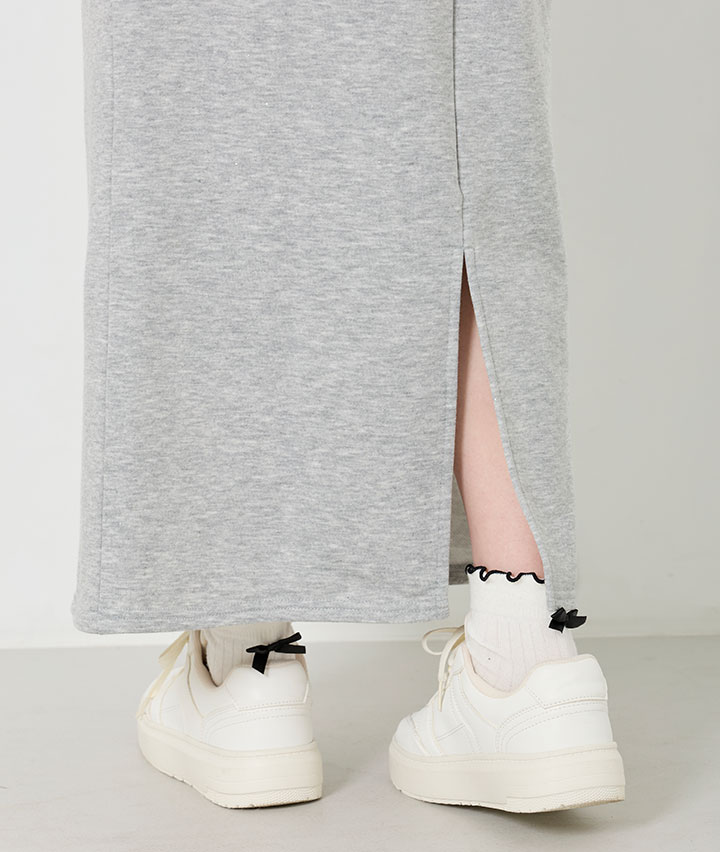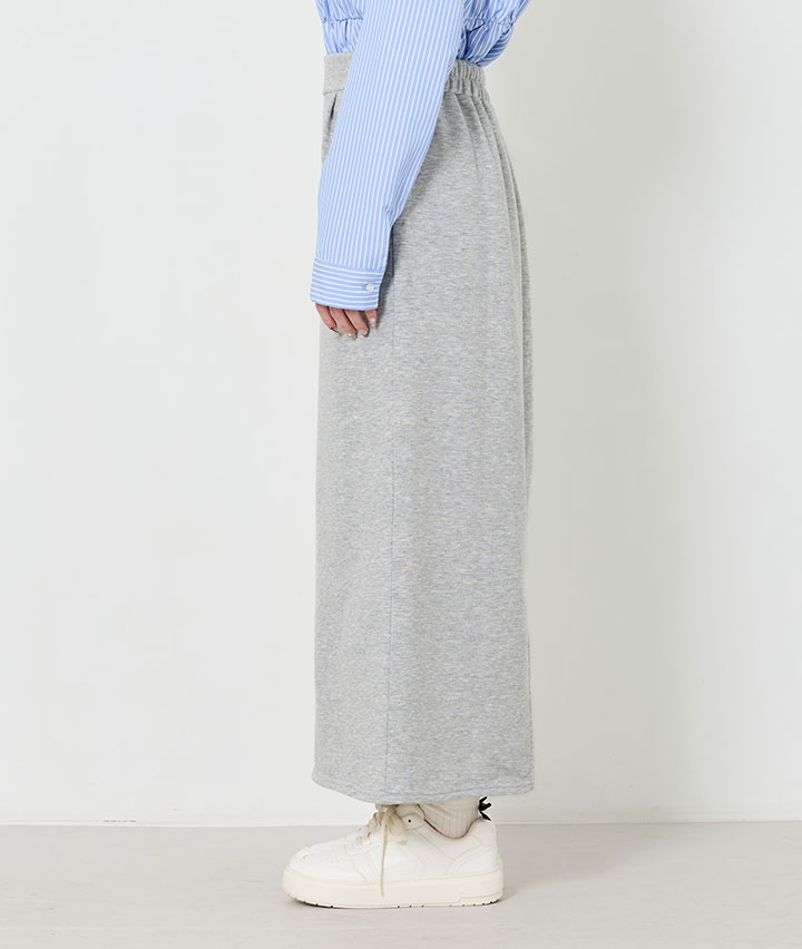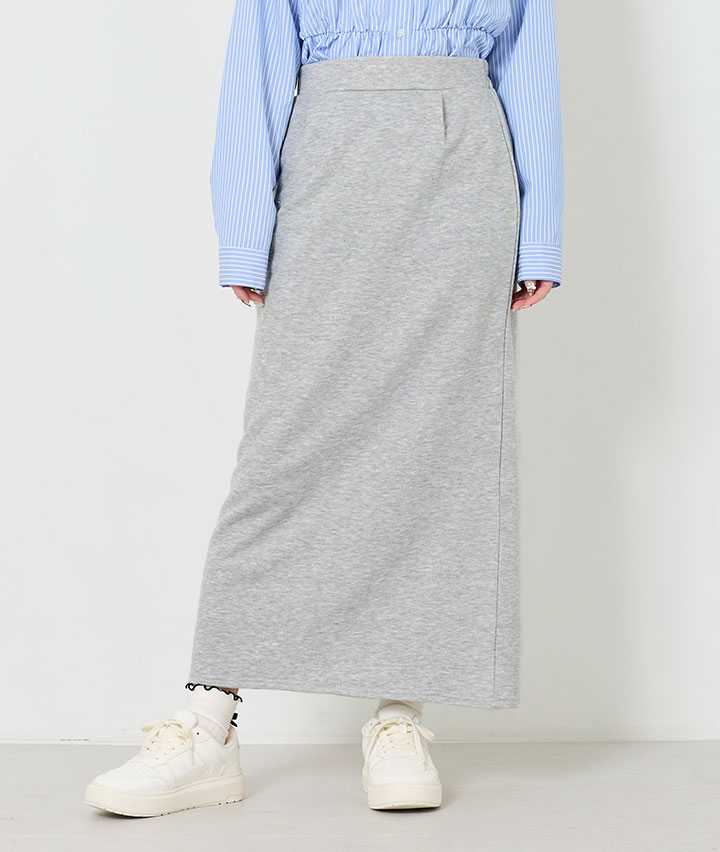 ・ラメ加工が施されたナロースカート。ベーシックな型で着まわしやすさ◎、ラメ加工でトレンド感もばっちりな一着です。