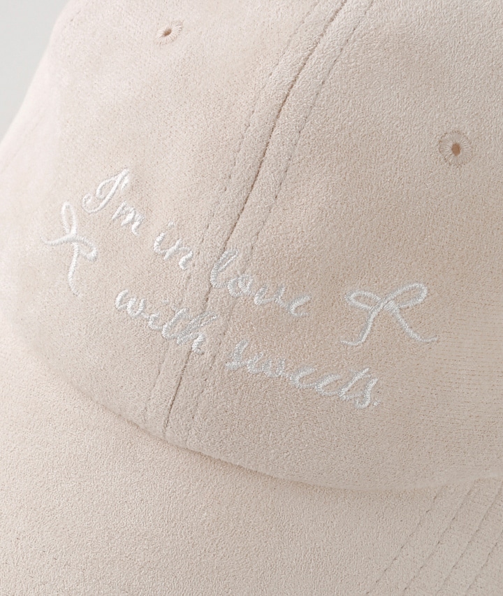 ・ポリエステルのスエード調の素材のCAP.フロントロゴはレタリング風な刺繍が施されてこれからの季節にピッタリなアイテムです。