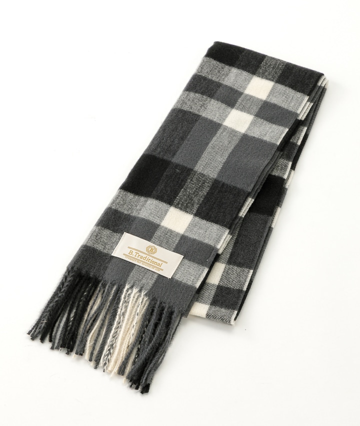 ・糸を柔らかくする加工によりカシミヤのようなふんわりした肌触りに近づけたカシミヤタッチマフラー。