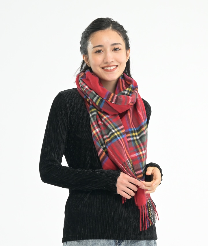 ・糸を柔らかくする加工によりカシミヤのようなふんわりした肌触りに近づけたカシミヤタッチストール。
