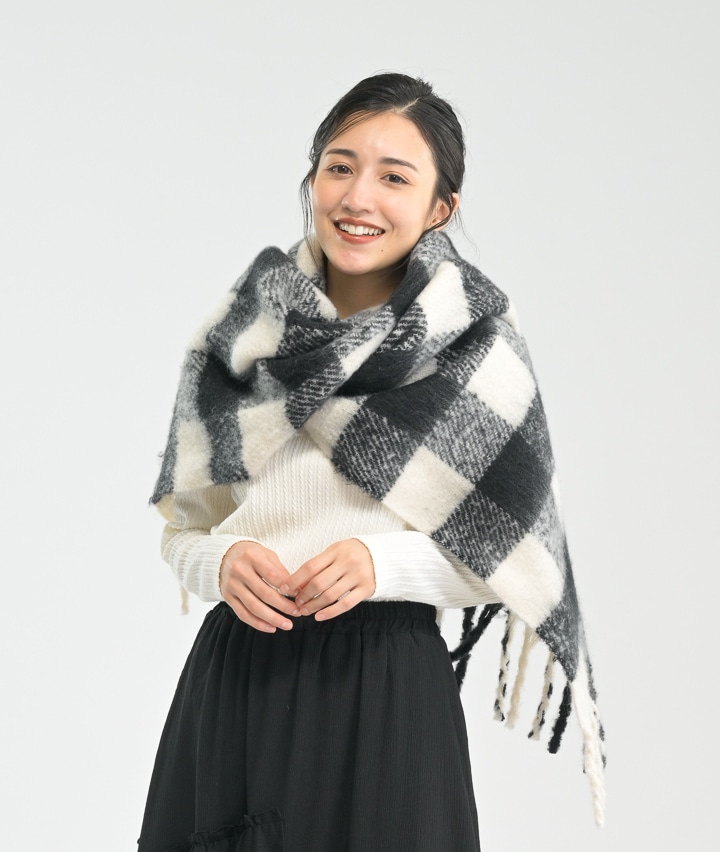 ・無造作に首に巻くだけでボリュームを作りこなれた雰囲気に、ふわふわした起毛感がぬくもりのあるマフラー。