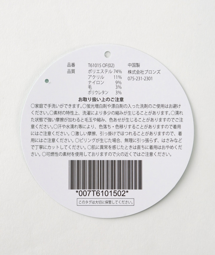 ・ポリエステル74% アクリル11% ナイロン9% 毛3% ポリウレタン3%