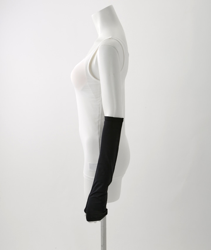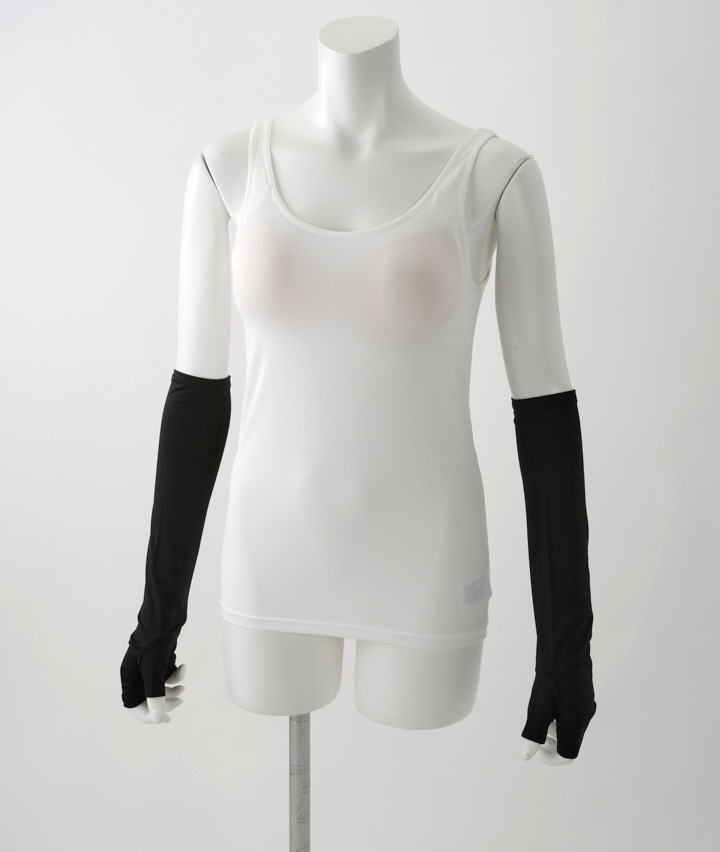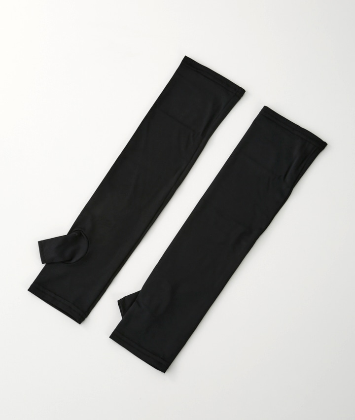・Q-MAX値0.39で冷たいナイロン素材のアームカバー。かさばらないセミロング丈 40cm