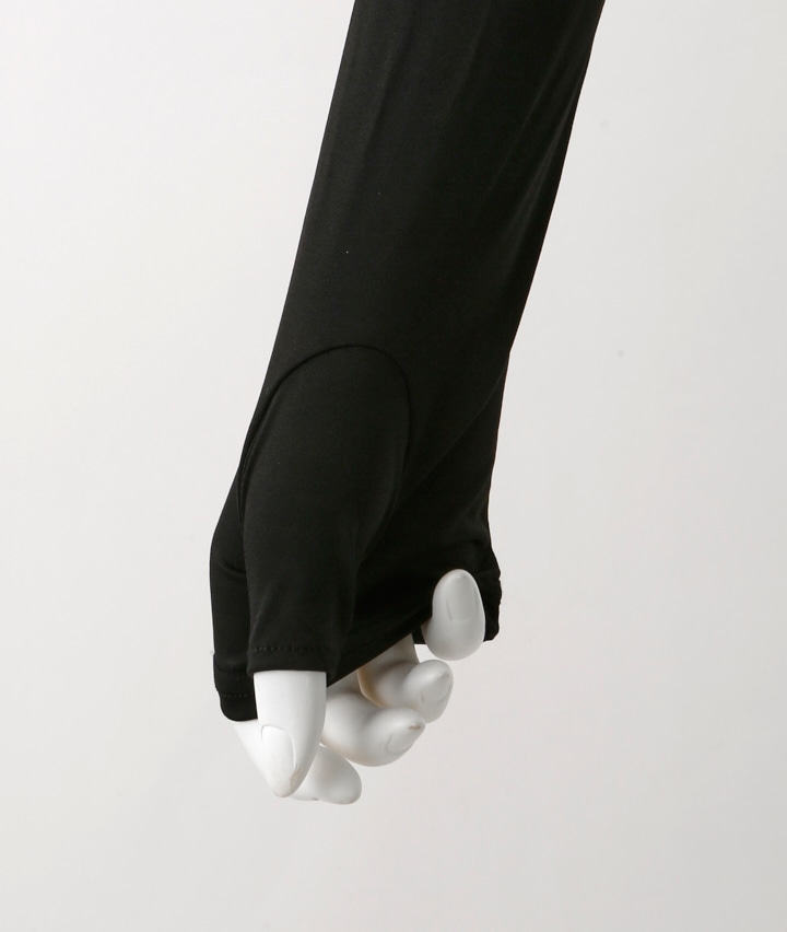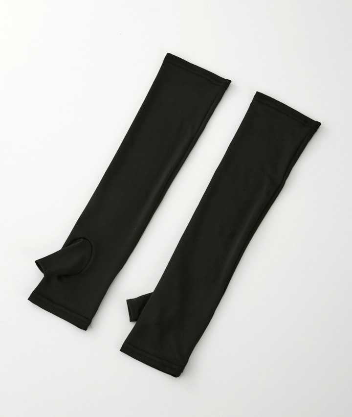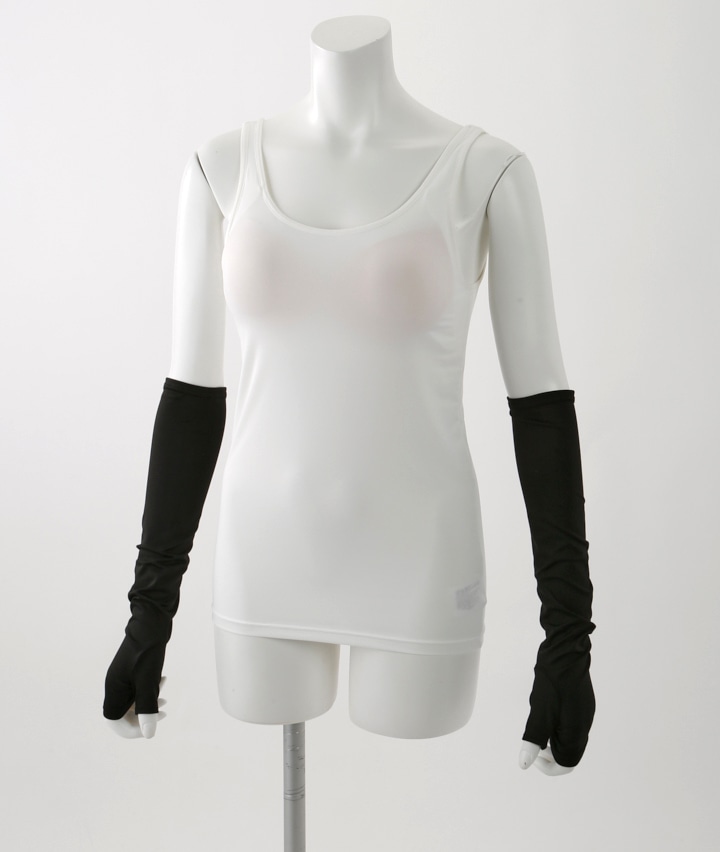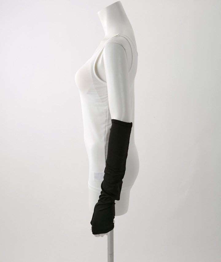 ・吸水速乾のサラサラ素材で、ひんやり快適なアームカバー。かさばらないセミロング丈 40cm