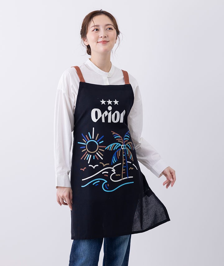 ・沖縄で設立されたビールメーカー「オリオンビール」が描かれたかわいい紐エプロンです。