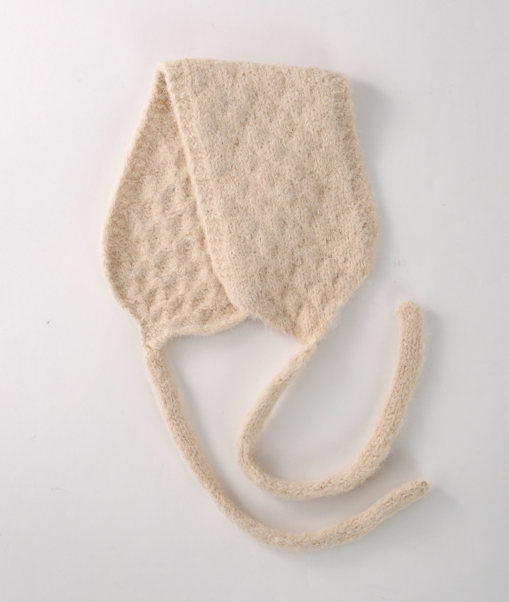 ・バブーシュカのようなスタイルを取り入れたイヤーマフです。温かみのあるニット編みです。