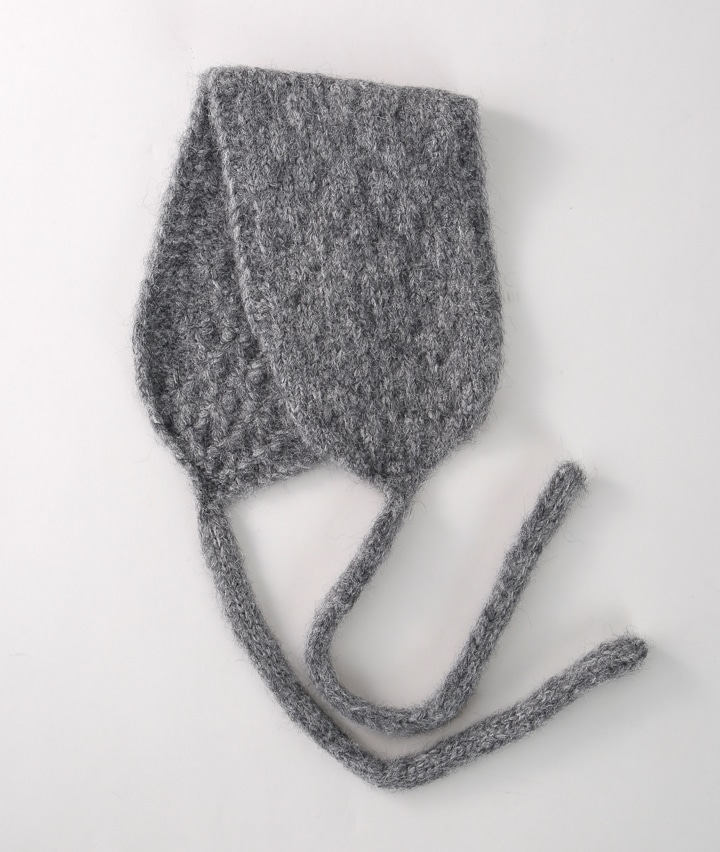 ・バブーシュカのようなスタイルを取り入れたイヤーマフです。温かみのあるニット編みです。