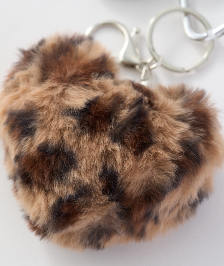 ・トレンドのコードとヒョウ柄をハート型のファーと組み合わせたチャーム。