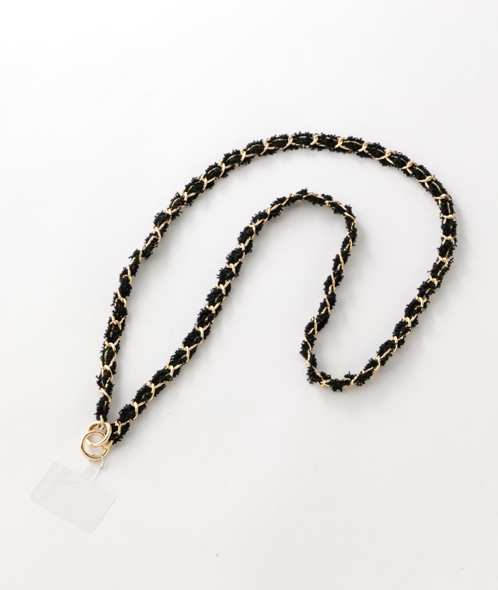 ・トレンドのツイードをチェーンと組み合わせたスマホストラップです