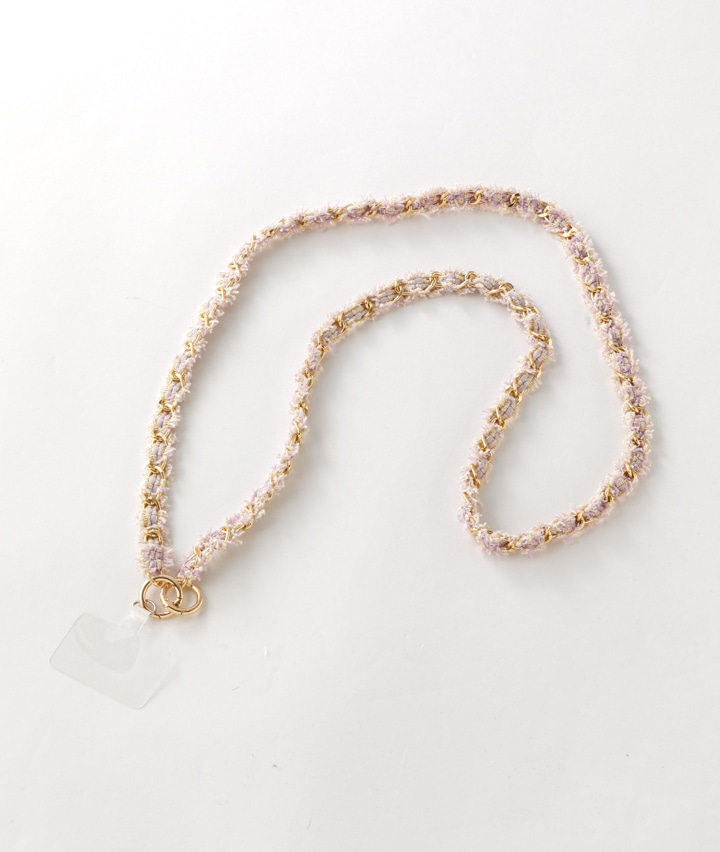 ・トレンドのツイードをチェーンと組み合わせたスマホストラップです