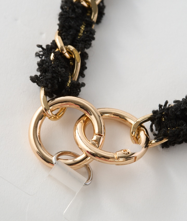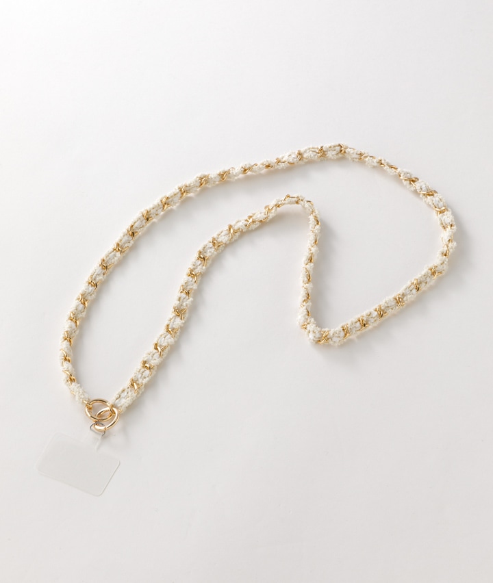 ・トレンドのツイードをチェーンと組み合わせたスマホストラップです