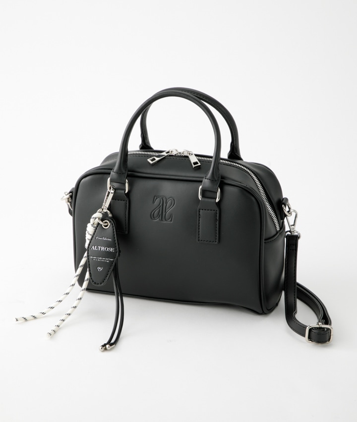 ・お出かけにピッタリなサイズ感のミニボストンバッグです。内側にはオープンポケットとファスナーポケットが1つずつ付いています。ショルダー紐が付属しているので、ショルダーバッグとハンドバッグの2wayでお使いいただけます。チャームはコーディネートに合わせて取り外しできる仕様です。
