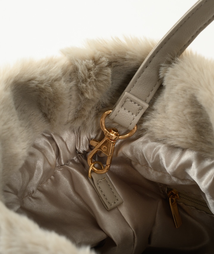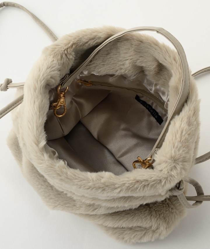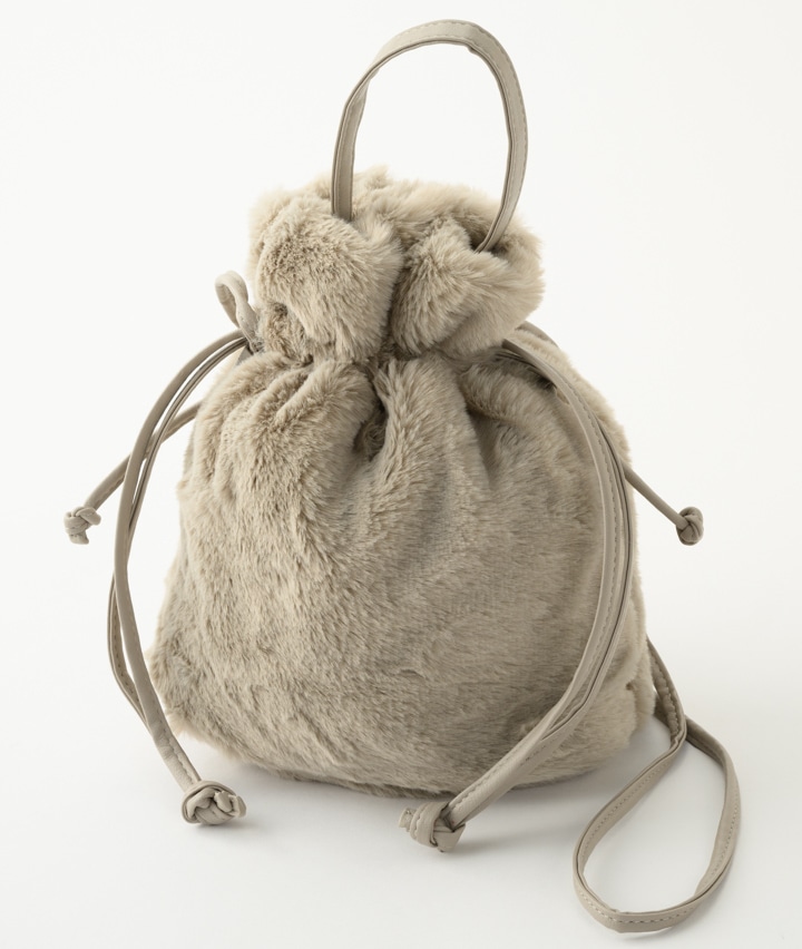 フェイクファー巾着バッグ