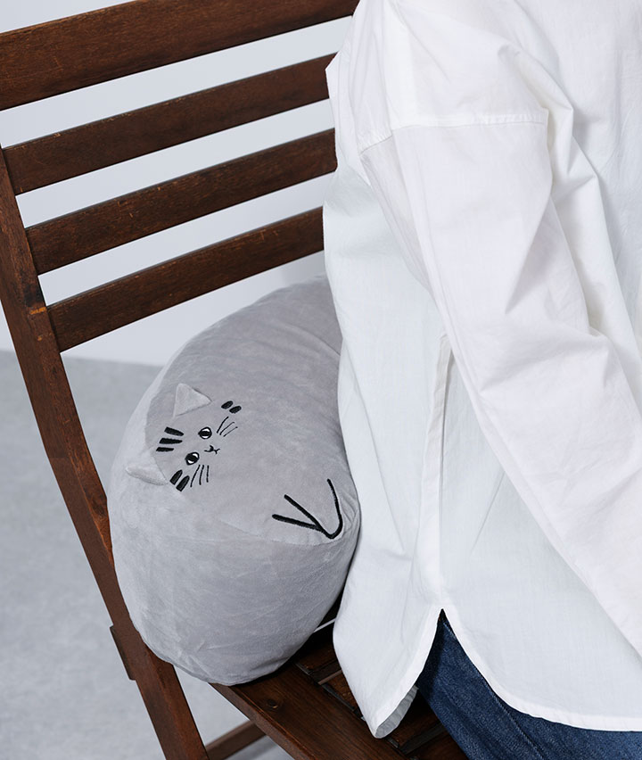 ・ころんとしたフォルムが愛らしい、ねこ型の豆クッション。ふんわりやわらかい生地で、思わず抱きしめたくなる触り心地。ソファやベッドに置くだけで、お部屋が癒しの空間に。ちょこんとした手足やしっぽのデザインもチャームポイント。お昼寝タイムのお供やリラックスタイムにもぴったりです!