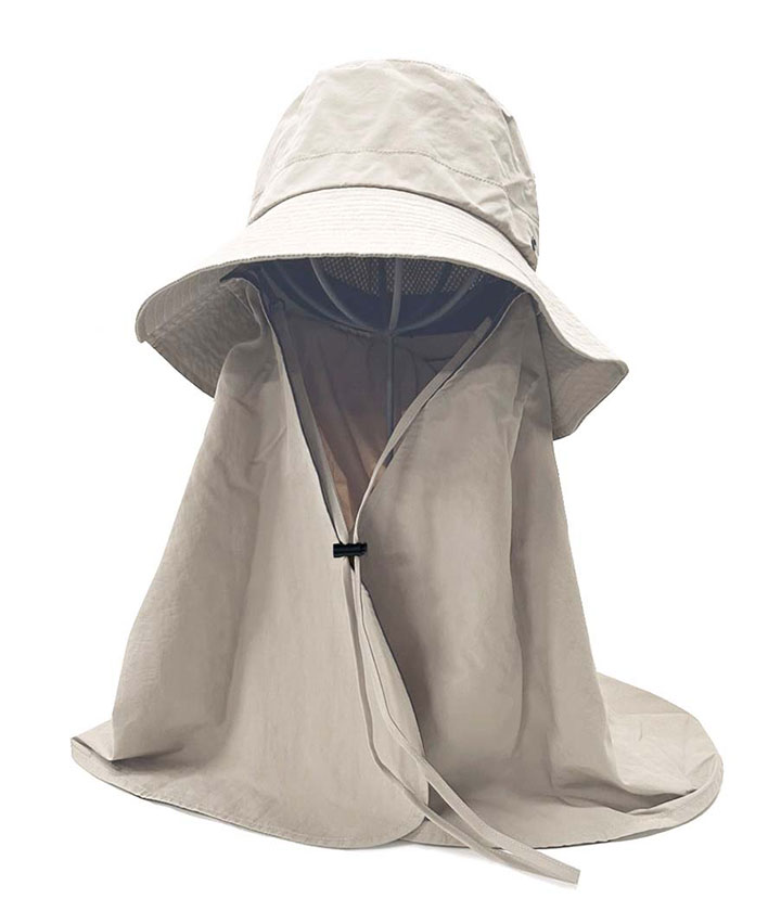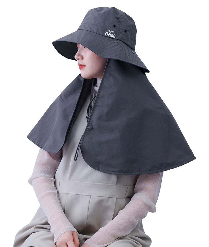 ・沖縄で設立されたビールメーカー「オリオンビール」デザインのタレ付きハットです。タレ部分は取り外し可能です。広め・長めのタレ付きで、肩回り全体を日差しから守ってくれます。