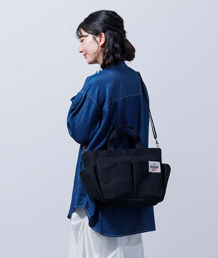 ・沖縄で設立されたビールメーカー「オリオンビール」が描かれた2WAYショルダーバッグです。内側はラミネート加工を施した生地で、汚れを気にせずお使いいただけます。