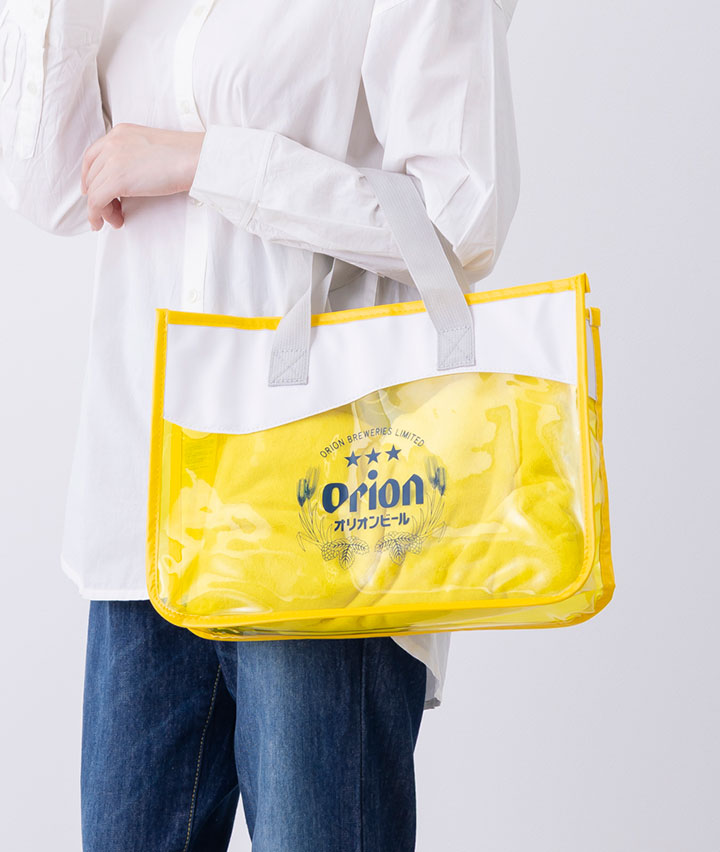 ・沖縄で設立されたビールメーカー「オリオンビール」が描かれた透明ビニールバッグです。スナップボタン付きでマチもしっかりしており、アウトドアにもおすすめ◎