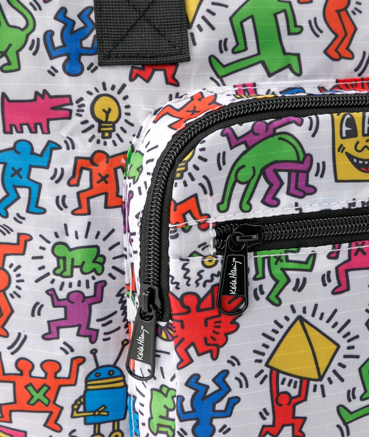 ・キース・ヘリングは、ポップ・アートを牽引する代表的な美術家。キース・ヘリングの総柄がおしゃれなパッカブルトート。軽量&大容量サイズで、様々なシーンで活躍するアイテム。キャリーオンできる仕様になっているので、長期間の旅行にも◎使わないときは小さく畳んで、持ち運びも楽々♪