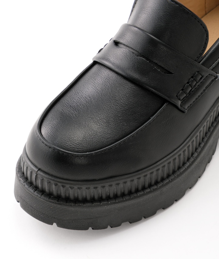 ・足元にボリューム感をだせる定番の厚底コインローファーシュ―ズ。トラッドなスタイルやカジュアルダウンな装いにも最適です。
