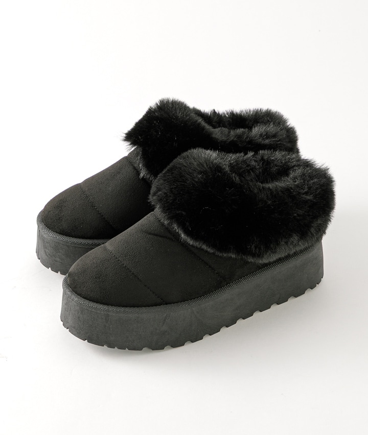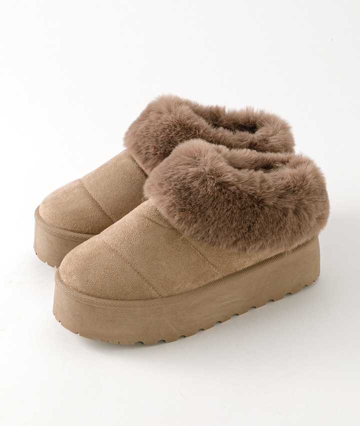 ・スタイルアップが叶うトレンドの厚底サボサンダル♪ボリューム感のあるエコファー使いが足元のアクセントになります。