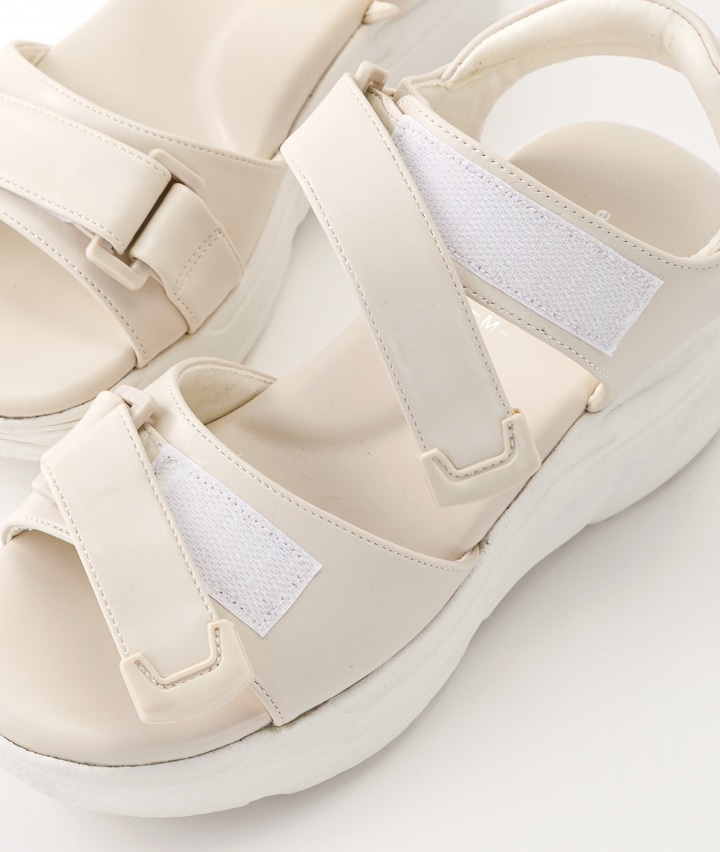 【04/29(水)10:00販売開始】ベルクロ仕様厚底合皮サンダル