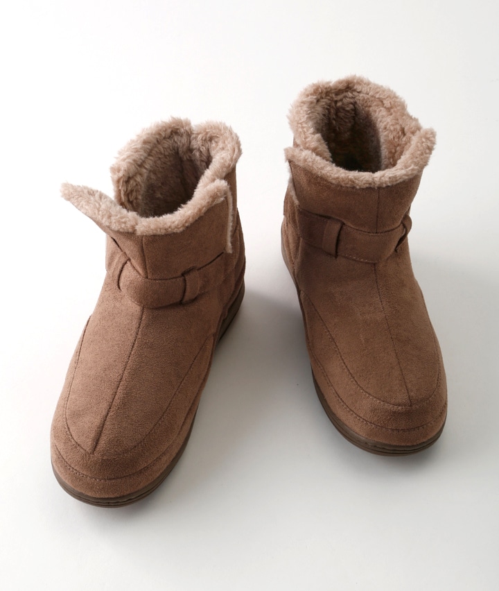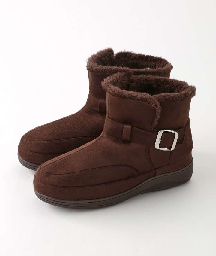 婦人裏ボア仕様ベルト使いカジュアルブーツ