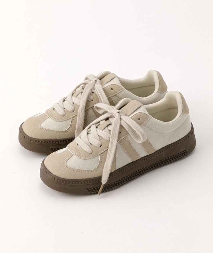 ・配色のカラーリングと素材感が足元のポイントになるデザインスニーカー♪トレンドのブラウン色から、春先人気の高いパステル調カラーまで豊富に取り揃えました。