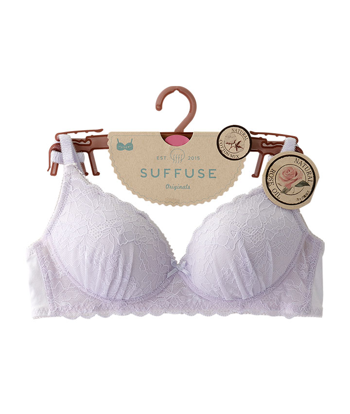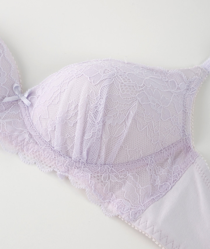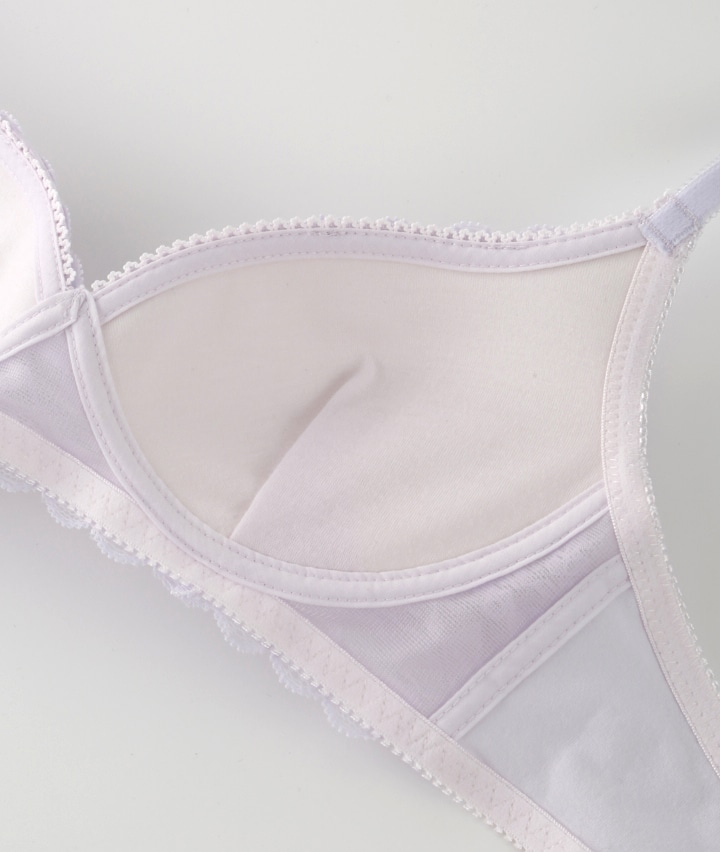 (ローズオイル加工)(コットンMIX)ラッセルレースノンワイヤーブラジャー