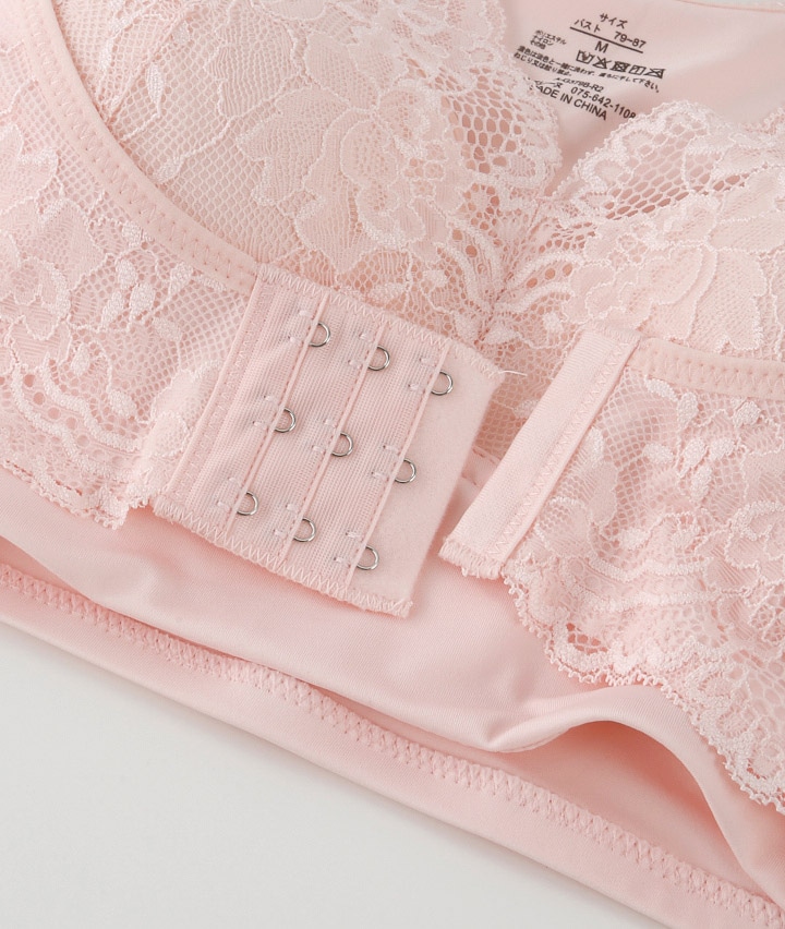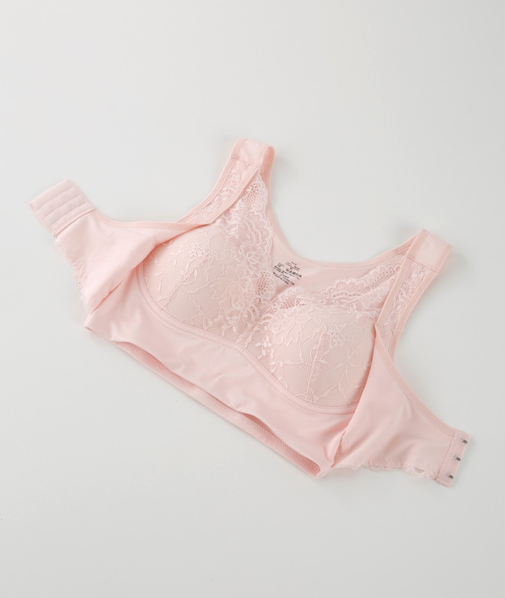 ・バージスラインに沿った前ホックがバストを正しい位置でキープしてくれるナイトブラ。横になってもバストが固定され横流れを防止。その日の気分や体調に合わせてフィット感を調節可能。