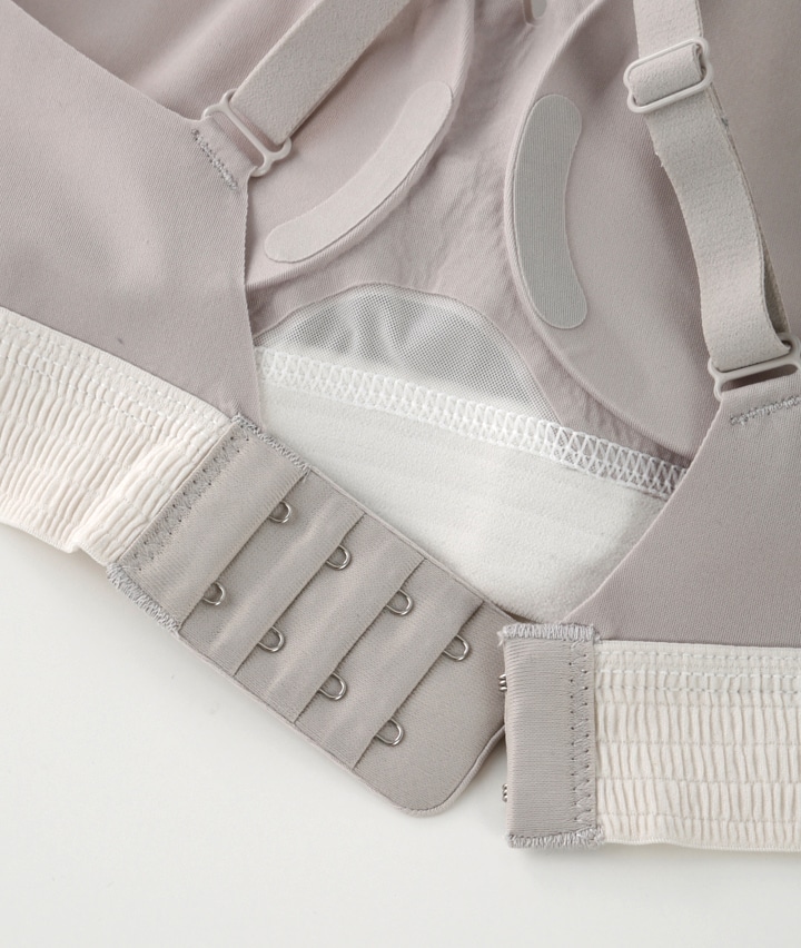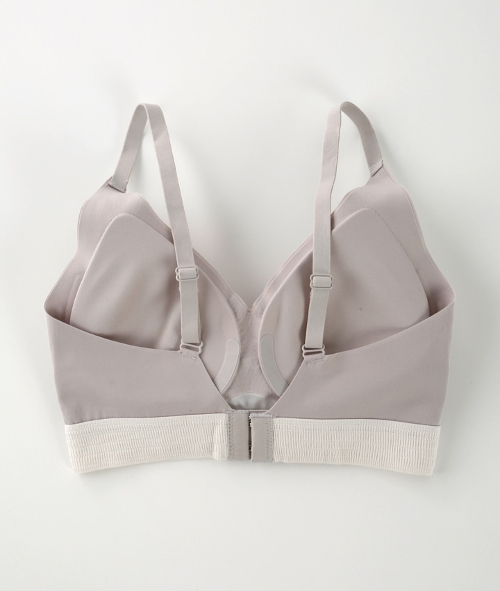 ・幅広のシャーリングゴムがよく伸びて、締め付け感なくラクな着用感。脇部分シリコン入りで横流れを防止。アウターに響きにくいシームレス仕様。ロゴ入りプレートが大人っぽくてクールな印象♪機能的なのにらくちん&かわいい毎日つけたくなるニューベーシックブラジャー!