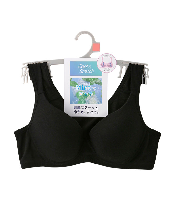 ・天然由来のミント加工&レーヨンMIXですっきり冷感。つるんとしたモールドカップでアウターにひびきにくい。内側パネルが自然な丸みの美胸をメイク。