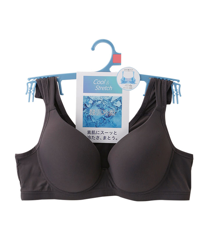 ・素肌にスーッと冷たさまとう接触冷感ハーフトップ。なめらかナイロン生地で柔らかい肌触り。つるんとしたモールドカップでアウターにひびきにくい。内側パネルが自然な丸みの美胸をメイク。広めの肩ひもでくいこみにくい。