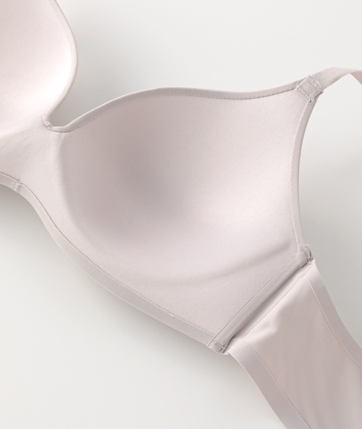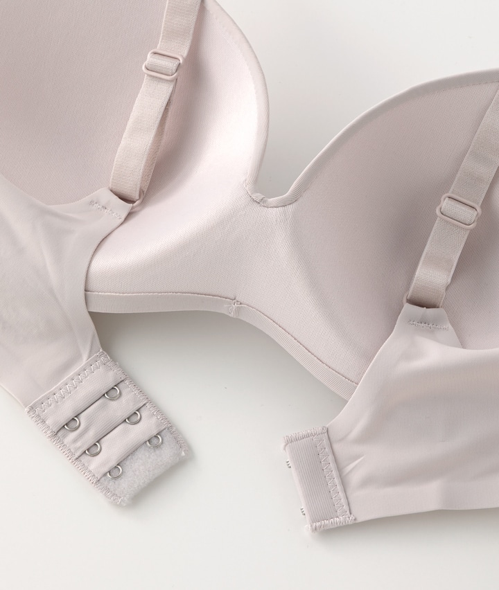 ・ぐにっと曲がるやわらかい樹脂ワイヤー入りで締め付け感は少なく、ほどよくバストを支えて立体感を作ります。素肌に溶けこむような着用感。アウターに響きにくく、ファッションの邪魔になりにくい仕様。ヒアルロン酸保湿加工でお肌にしっとりご褒美。