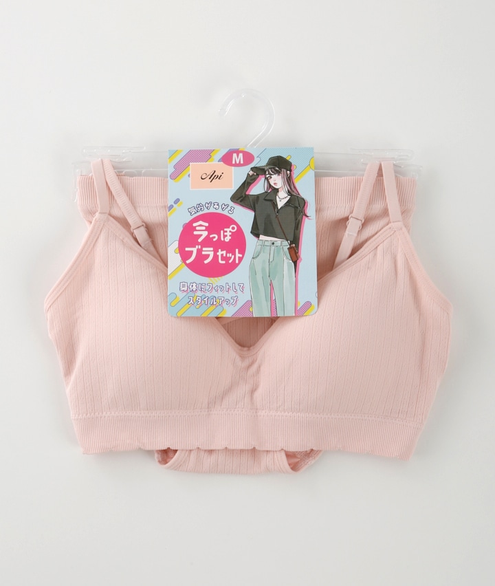 (今っぽブラセット)(成型編み)リブハーフトップ&ショーツセット