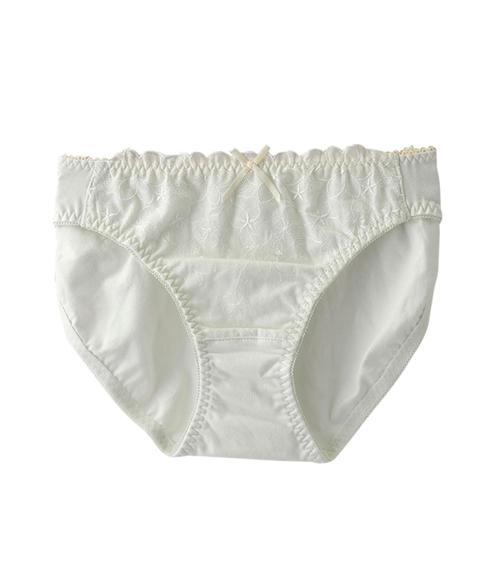 ・たっぷりフラワー刺?入り綿レースがナチュラルかわいいショーツ。ローズオイル加工で気分華やぐ&コットンMIX素材でお肌に優しいはきごこち。