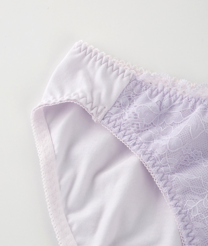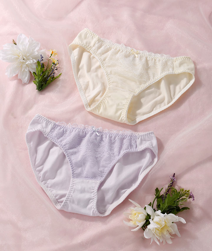 ・アンティーク調のラッセルレースがナチュラルかわいいショーツ。ローズオイル加工で気分華やぐ&コットンMIX素材でお肌に優しいはきごこち。