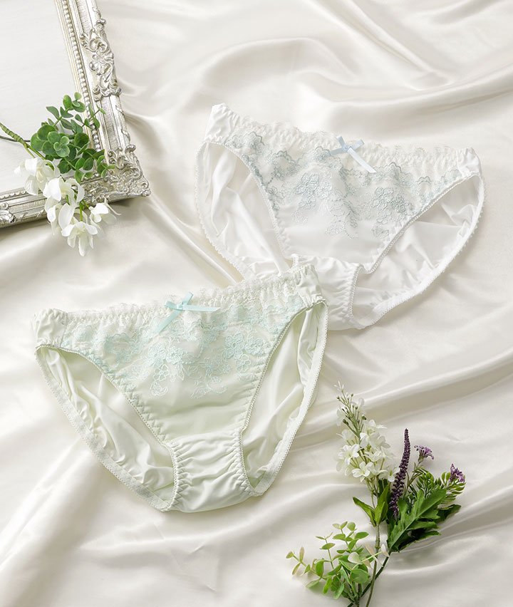 ・大人かわいい小花柄のラメ刺繍を施したレースショーツ。さらりとした肌触りの生地で気持ちいい履きごこち。