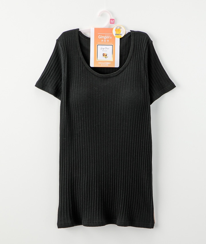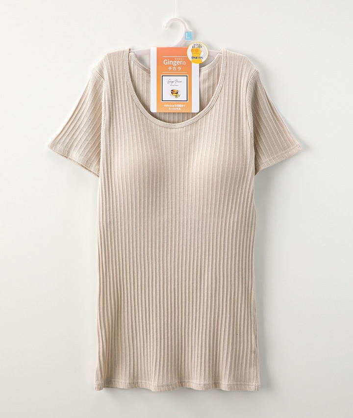 【Gingerのチカラ】(発熱綿)丸パッド付きフレンチ袖インナー