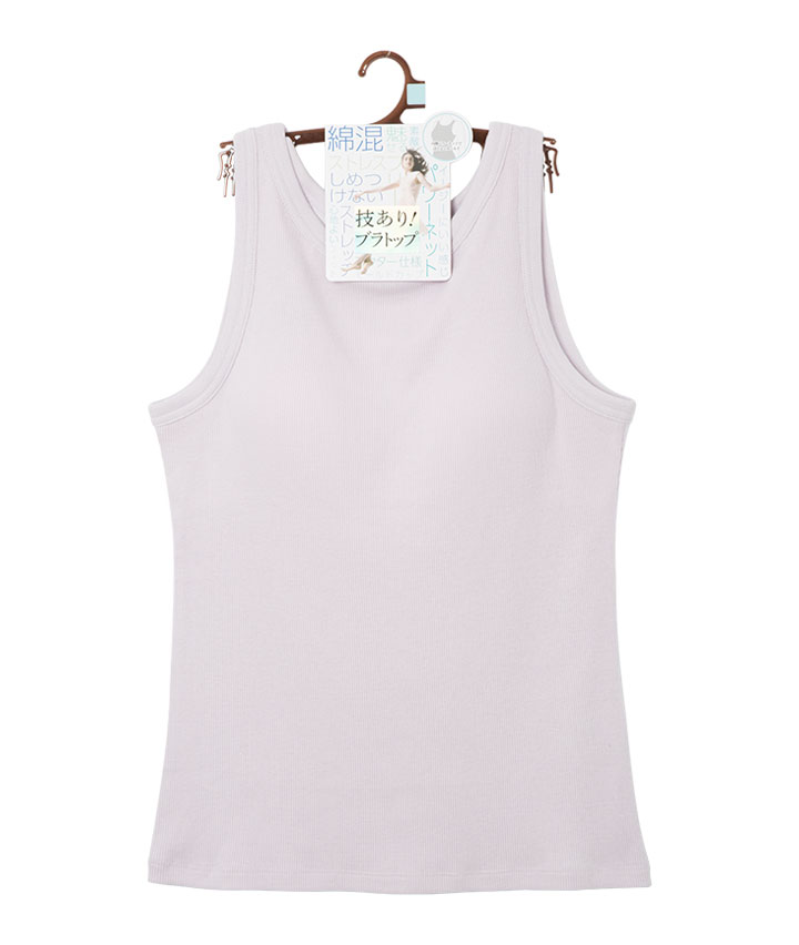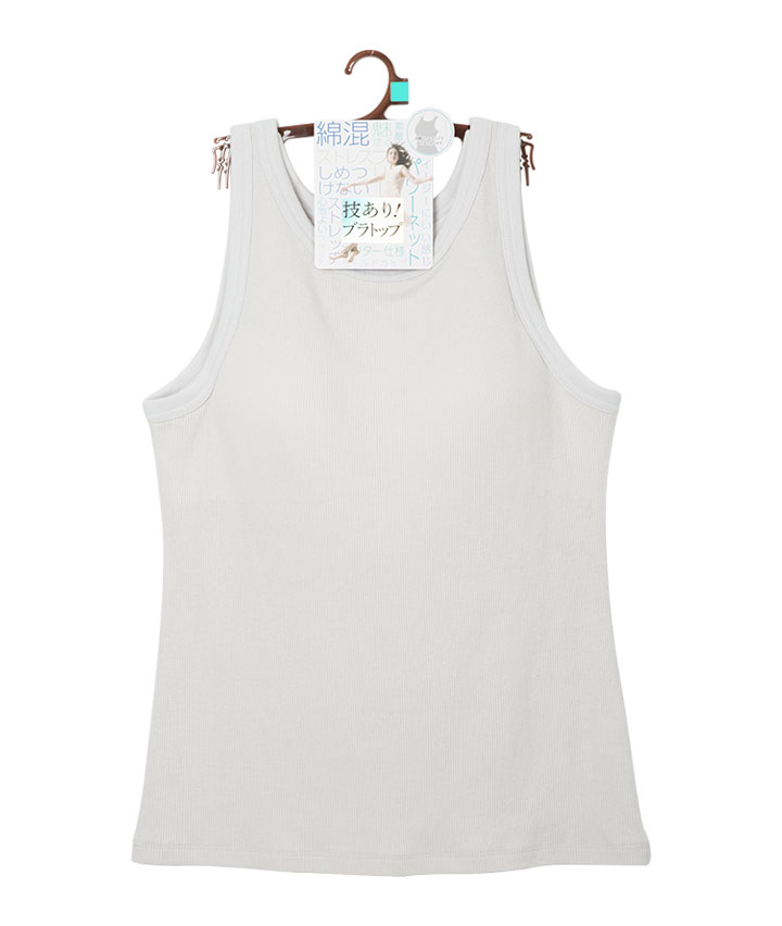 (技ありブラトップ)綿混リブブラトップタンク