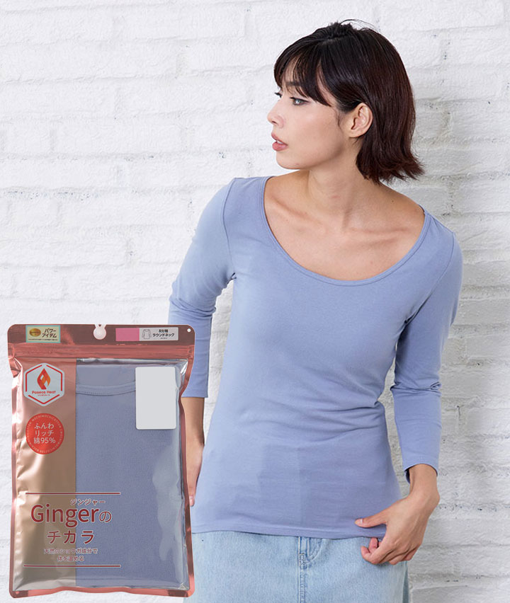 【Gingerのチカラ】(吸湿発熱)(綿混微起毛)8分袖インナー