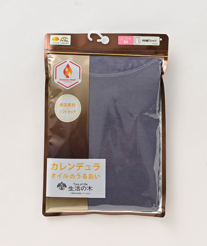 【生活の木オイル使用】(吸湿発熱)(綿混)8分袖インナー