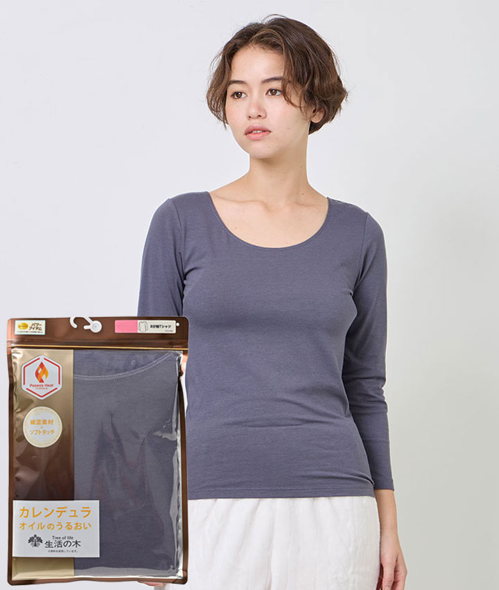・人気のアロマショップ「生活の木」が厳選した保湿オイルを使用しお肌をいたわります。吸湿発熱で肌にやさしい綿混素材インナーです。