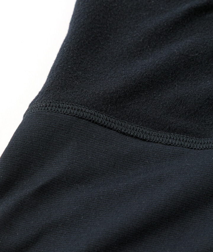 ・遠赤外線加工のなめらかな裏起毛素材。お腹部分を2重設計ですっぽり包んで冷えから身体を守って整えます。