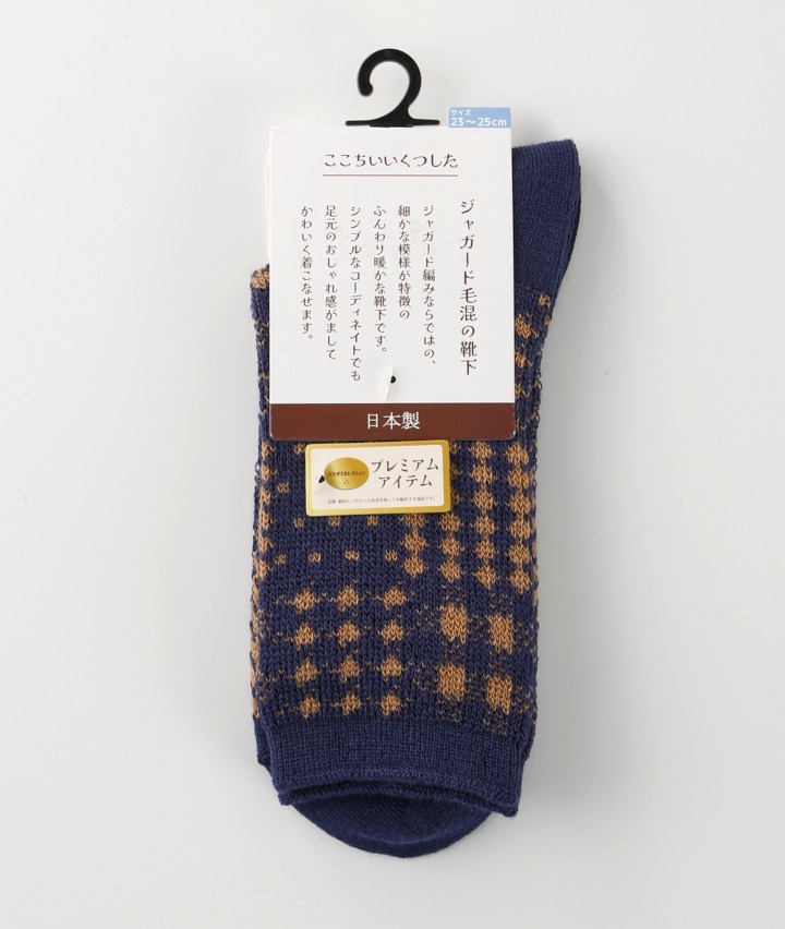 ・ジャガード編みならではの、細かな模様が特徴のふんわり暖かな靴下です。シンプルなコーディネートでも足元のおしゃれ感がまして、かわいく着こなせます。