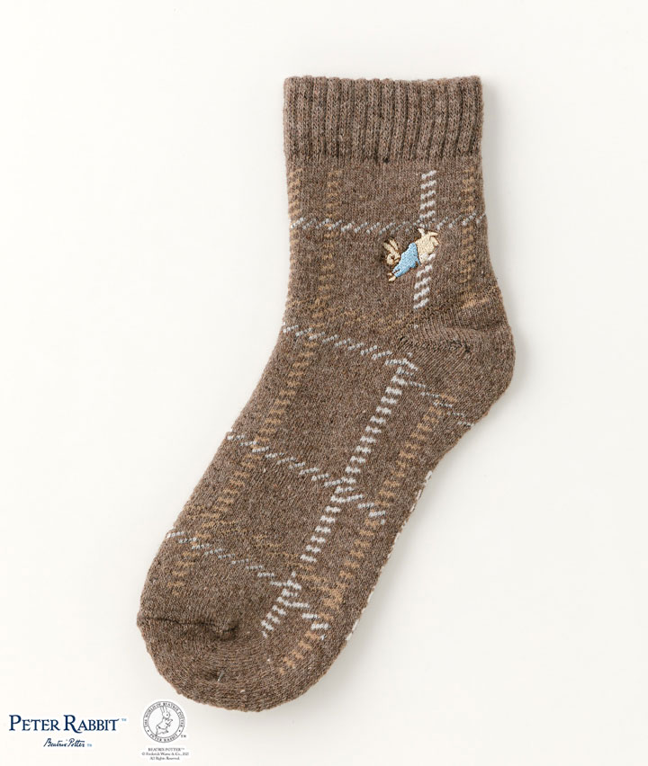 ・人気キャラクターピーターラビット毛混総パイルの暖かいソックスです。